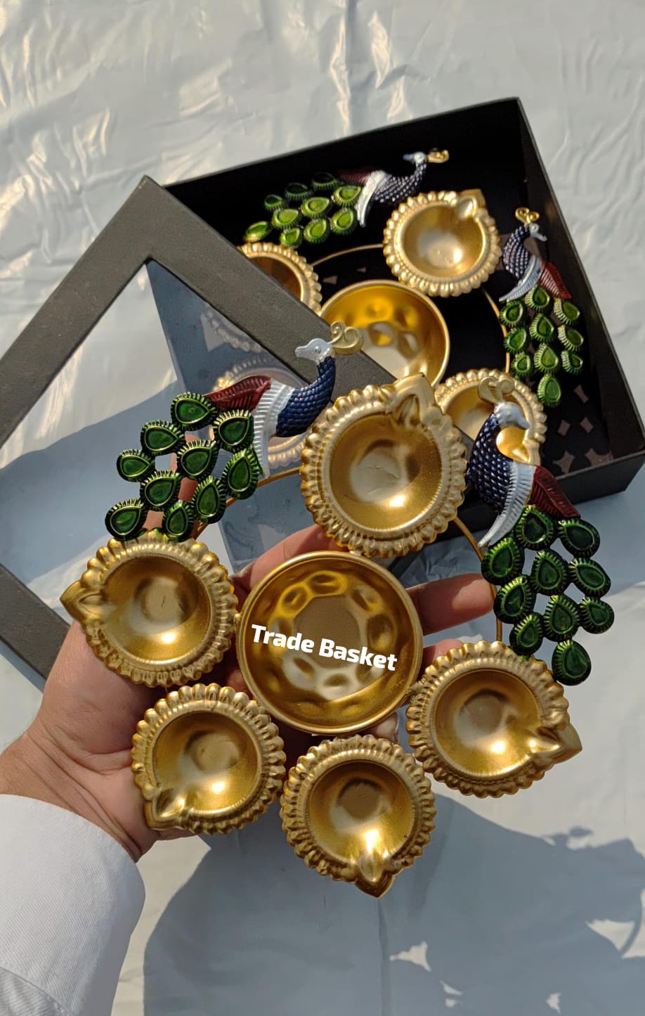 7 inch Peacock colourful urli with gift box packing