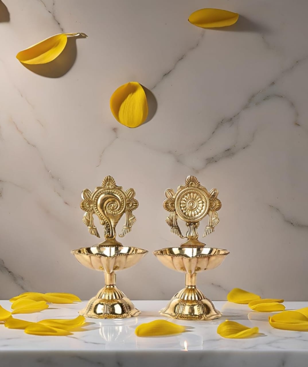 Pure Brass Shanku Chakra Diya (3 Inch)